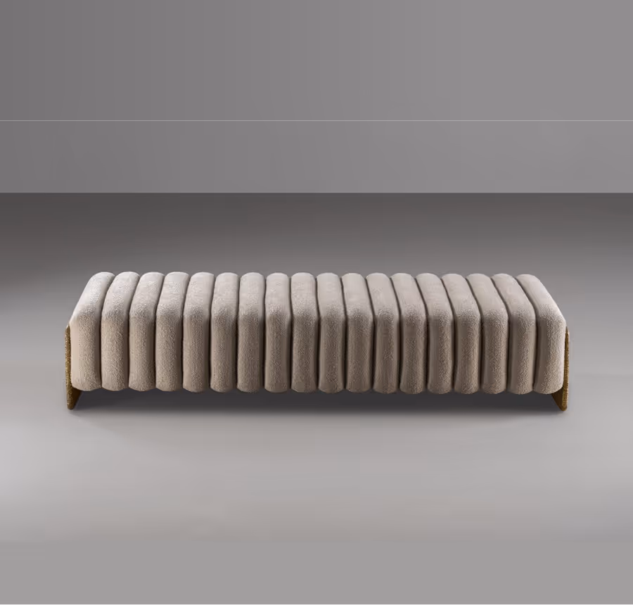 Brute is a series of sculptural pieces of accent furniture that derives its form from the fauna. The bench mimics the contours of an animal like form, which delights the senses with the tactile textures adorned in fabric as well as gouged wood.